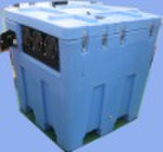 Outdoor Portable Refrigerated bin is a Portable refrigerator cold be used as frezzer or cold storage room. 1) Specious outer design, all plastic shell which is very strong and has advantage of anti-corrosion and anti-shock. 2) It has features of compact constructin and quick cooling, The solid capacity can reaches 80% above. 3) This portable bin can be used in very rigid environment with high temperature, and hte cabinet inside temperature can reaches minus 15 centigrade below while the working temperature is 43 centigrade. 4) Special designed shape offers an option for refrigerated outdoor carriage and long distance transportaion. 5) The refrigerant is R404a which is an environment friendly material. 6) Greater control over storage conditions and movement timing which assures the product quality and freshness. 7) The refrigeration for all situations specially where traditional systems do no exist or can not function. It can be used for refrigerated storage of food and chemicals in different industries such as petroleum extraction, mining, geological prospecting, archaeological survey , activities in the territorial sea as well as army etc.